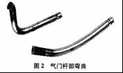 2.锁夹脱落。气门安装时,若锁夹选用不对,安装不好或受强烈震动冲击等,锁夹会脱落或失效,气门将掉人缸内,其表现形式为气门锁夹槽部位完好,气门杆部弯曲,如图2所示。
