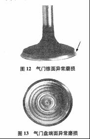 10.进气洁净度差、气门间隙不当、落座时对座口冲击大及气门旋转太快导致气门锥面异常磨损,如图12和图13所示。