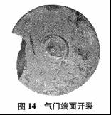11.气门端面不允许打标记或研磨气门时敲击,否则将使局部应力集中导致开裂,如图14所示。